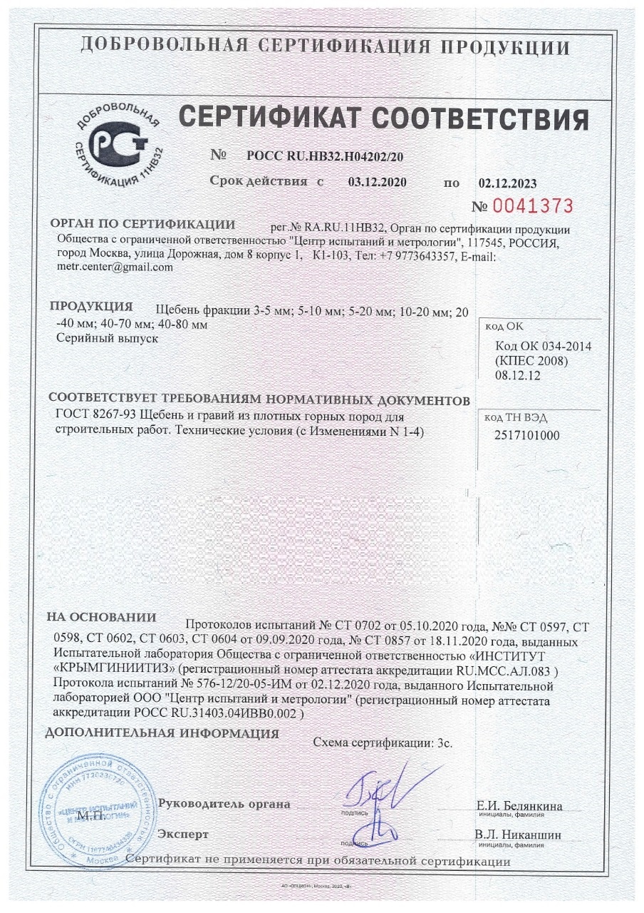 Сертификат соответствия на речную гальку